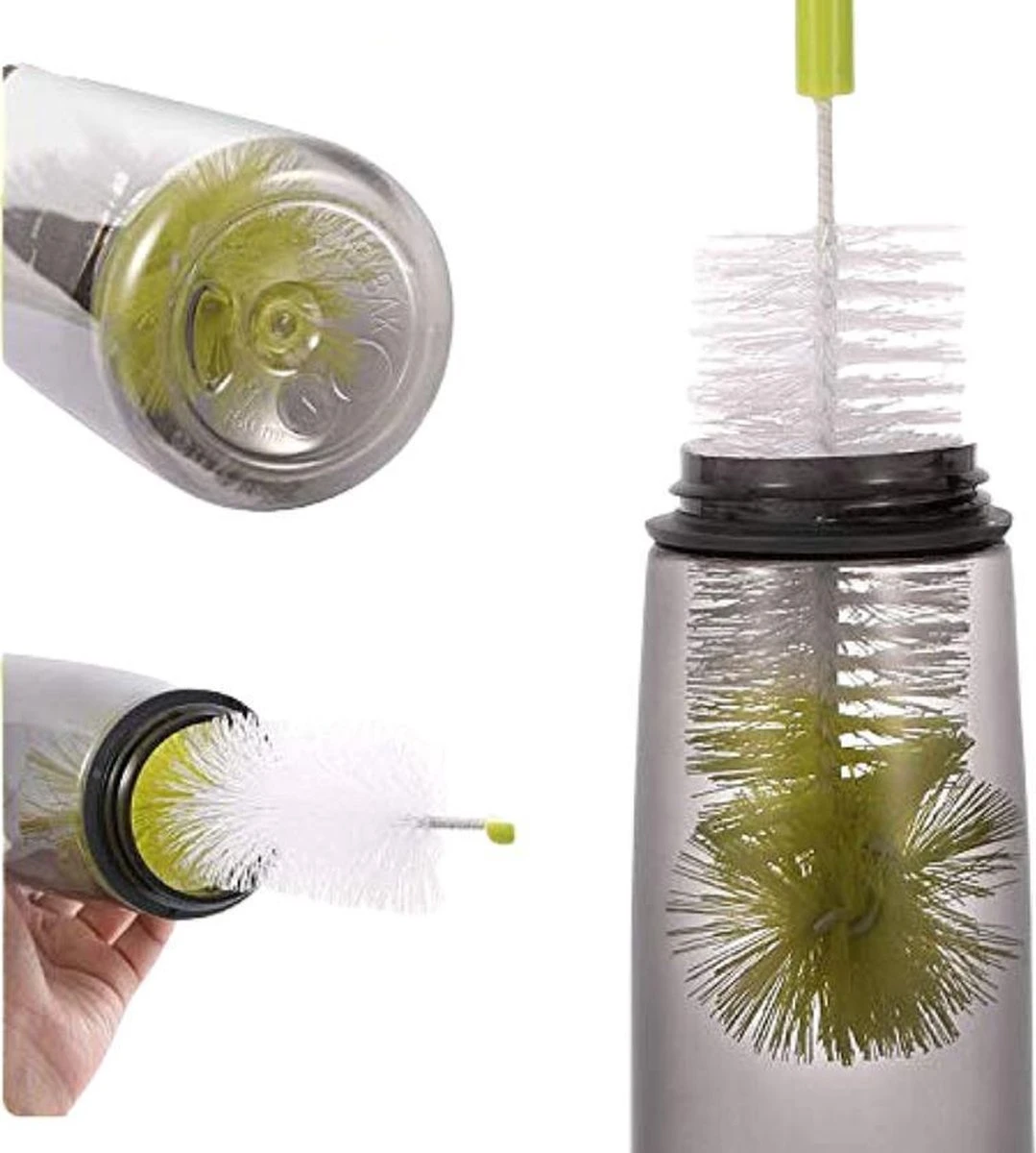 Ook altijd moeite met het schoonhouden van flessen, vasen en bekers? De borstel is ontworpen voor het reinigen van melkflessen, kolfonderdelen spenen, vasen en bekers. De borstel bestaat een flexibele haren. Dit zorgt ervoor dat alle hoekjes in de flessen goed worden schoongemaakt.