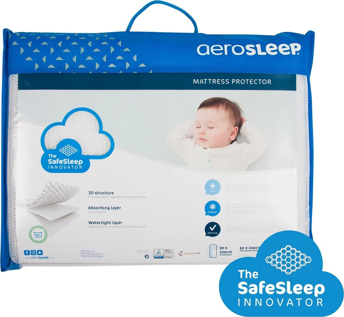 De originele AeroSleep® SafeSleep 3D Beschermer laat je kindje altijd veilig ademen, reguleert de warmte en absorbeert vocht. Bovendien houdt de Beschermer óók het matras in topconditie.