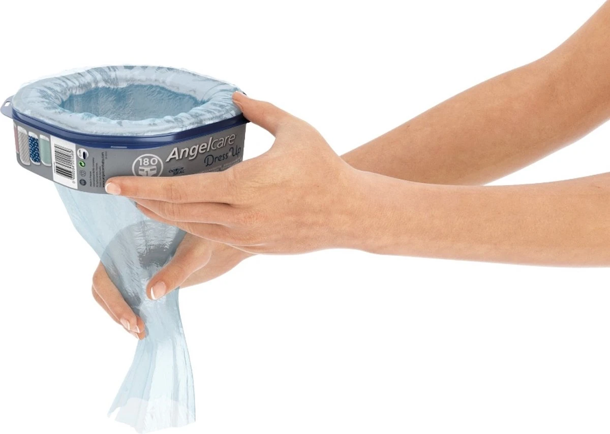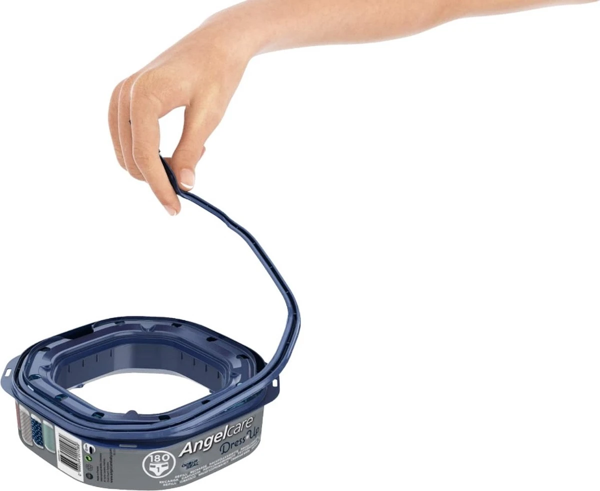 De AngelcareĀ® navullingcartridges gaan langer mee en verbruiken veel minder film. De luiers worden niet afzonderlijk in de film geschroefd, maar in een stuk slang verzameld. Dit is vriendelijker voor het milieu omdat het aanzienlijk minder film verbruikt. 1 AngelcareĀ® navulcassette Dress-Up is voldoende voor ongeveer 180 luiers!!