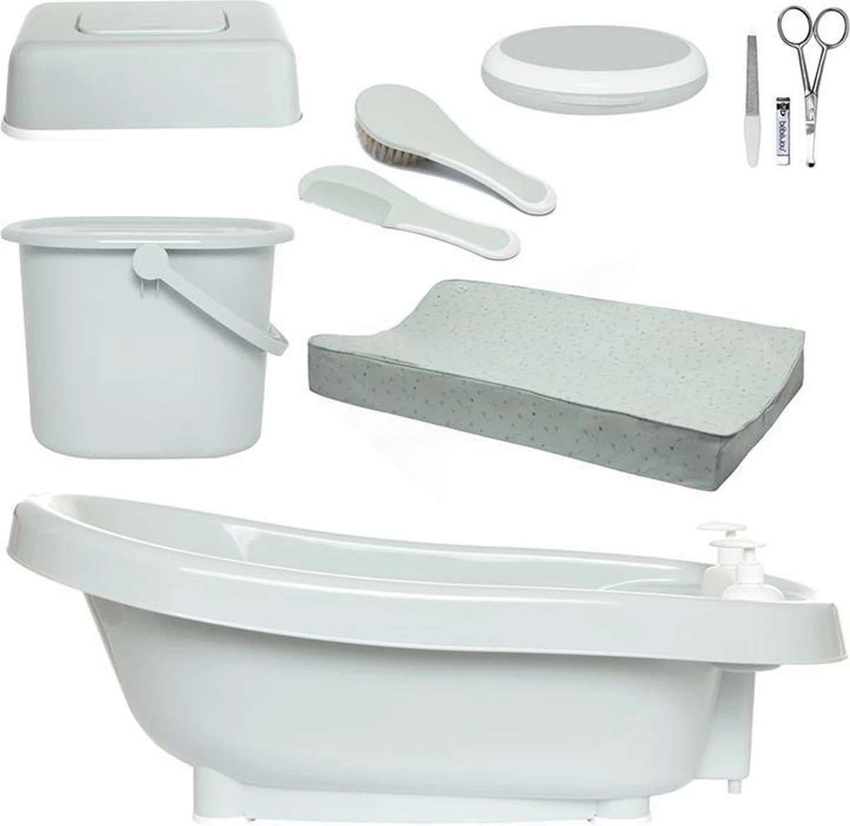 De inhoud van de emmer is 14 liter, precies voldoende om het babybadje te vullen.