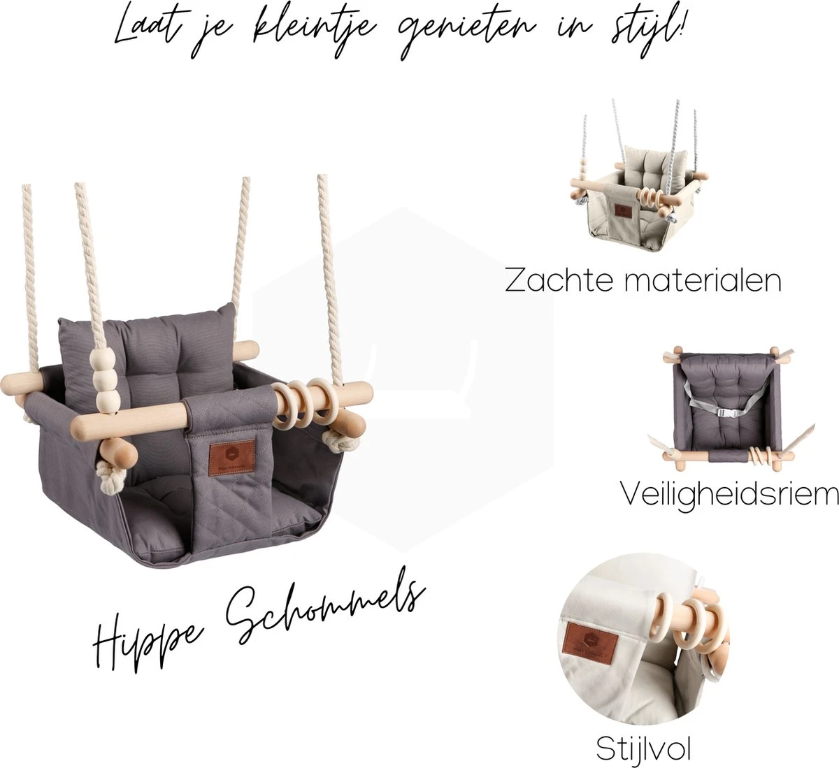 - Benieuwd hoe deze schommel jouw kleintje kan laten stralen? Check dan onze Instagram @hippe_schommels onder “happy customers”!