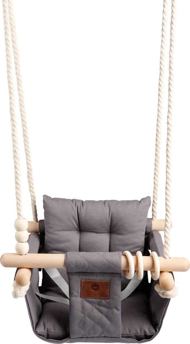 Dit schommelzitje is volledig handgemaakt met hoogwaardige materialen. Het frame is van beuken hout en het wordt geleverd inclusief zachte, ademende kussens en roestvrij stalen bevestigingsmaterialen. Daarnaast ziet dit schommelzitje er natuurlijk erg leuk en modern uit!