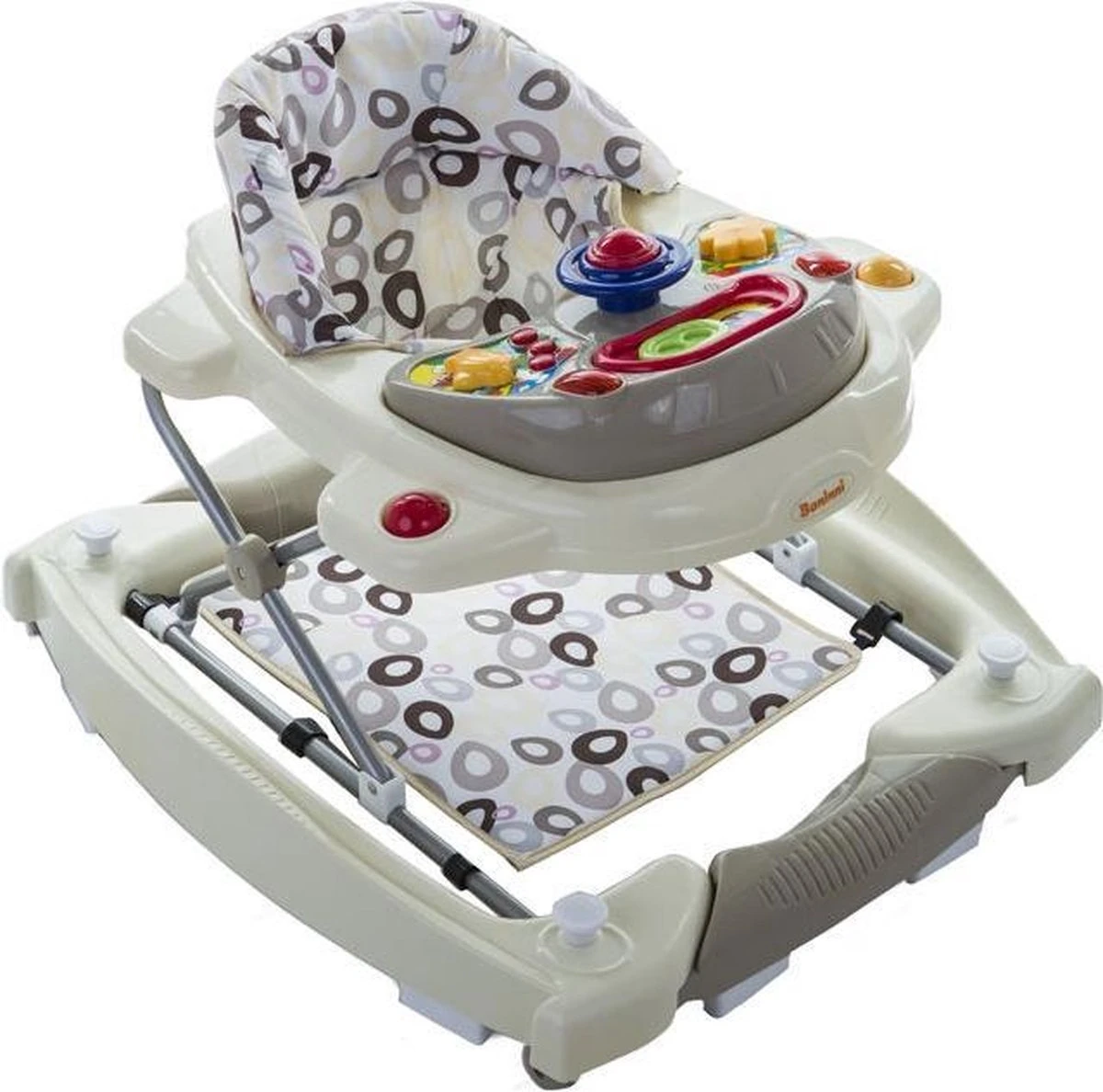 Met deze unieke loopstoel van Baninni kan uw kleine de hele wereld verkennen op eigen houtje. Als uw kind niet wil lopen, kan de loopstoel eenvoudig worden omgezet in een schommel. De walker is geschikt voor kinderen van 6 maanden en tot een maximum gewicht van 12 kg. Het speelblad met muziek en geluid zal uw kind veel plezier geven. Het loopstoeltje is eenvoudig te reinigen met een vochtige doek en de zitting kan worden gewassen met de hand.