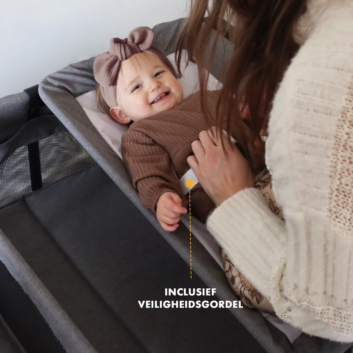 Het campingbed is voorzien van ventilerend gaas aan alle kanten, waardoor je jouw kindje altijd in de gaten kunt houden.