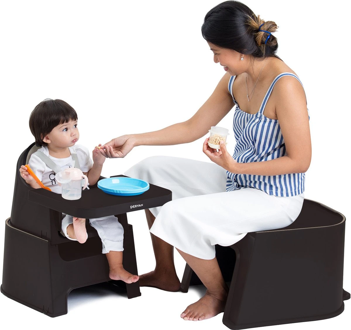 Uniek is het compacte en lichtgewicht Matroesjka ontwerp voor meerdere opstellingen die handig zijn bij verschillende leeftijden. Te gebruiken als hoge kinderstoel, lage kinderstoel, met adapter voor autostoeltje en wipstoel, junior stoel, losse stoel, tafeltje en grote stoel. DERYAN biedt ook passende accessoires voor de Quuby zoals het speelblad, de eetmat, bestek en een opbergtas.