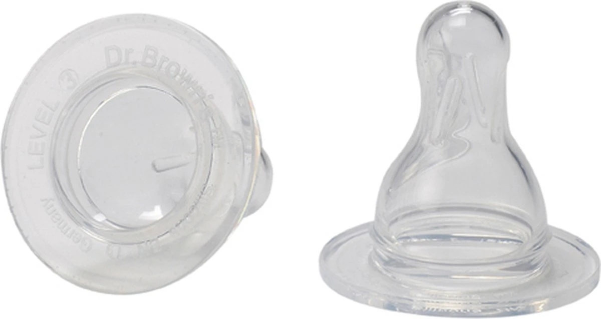Vanaf ca. 6 maanden. De spenen van Dr. Brownās zijn gemaakt van klinisch geteste siliconen. Door de zeer zachte textuur en speciale vorm liggen ze perfect in je babyās mond. Vervang spenen elke zes weken, of eerder als ze tekenen van slijtage vertonen.