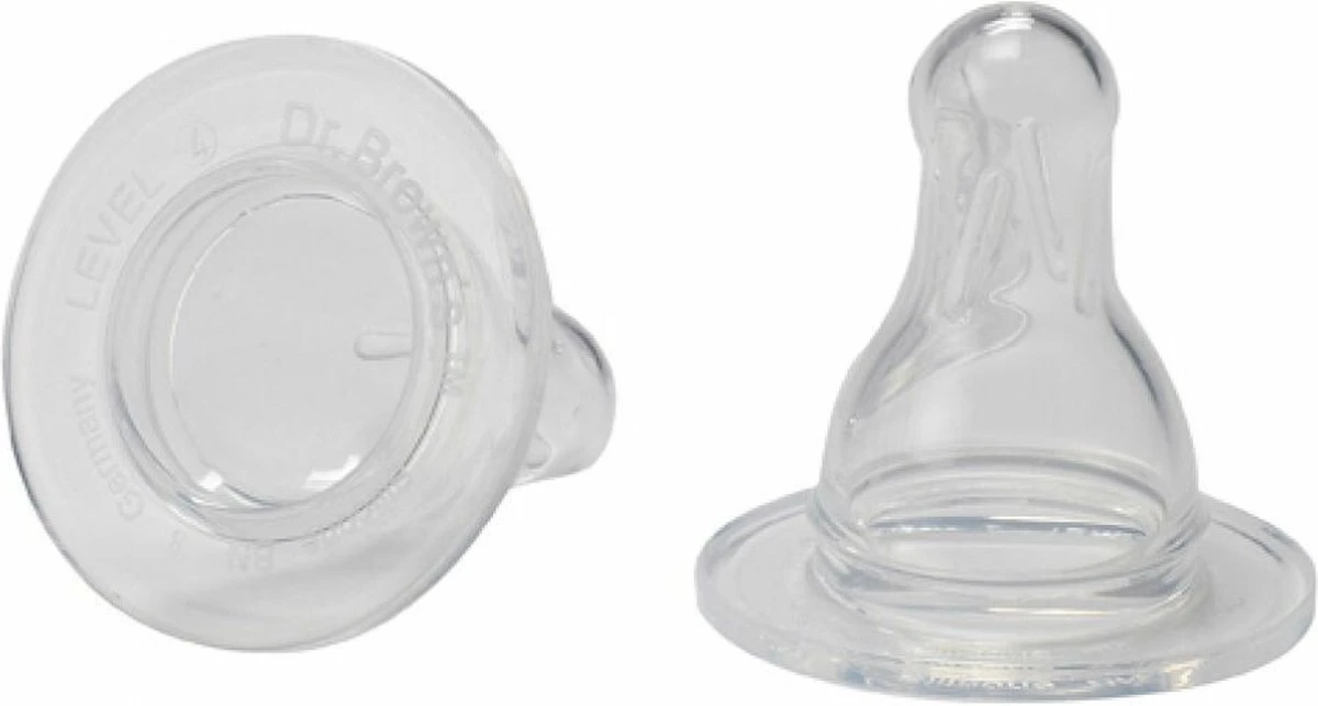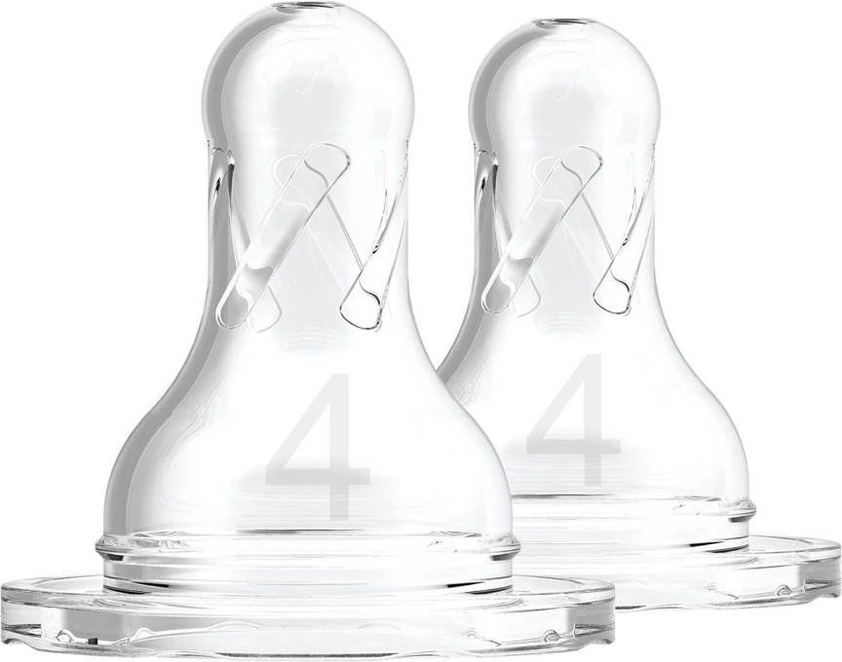 Vanaf ca. 9 maanden. Snelste doorstroming. Speciaal voor pap en voor grove dikkere voeding (zoals johannesbroodpitmeel). Ook geschikt voor gulzige eters, voor wie voorgaande fasen dus te traag gaan. De spenen van Dr. Brownās zijn gemaakt van klinisch geteste siliconen. Door de zeer zachte textuur en speciale vorm liggen ze perfect in je babyās mond. Vervang spenen elke zes weken, of eerder als ze tekenen van slijtage vertonen.
