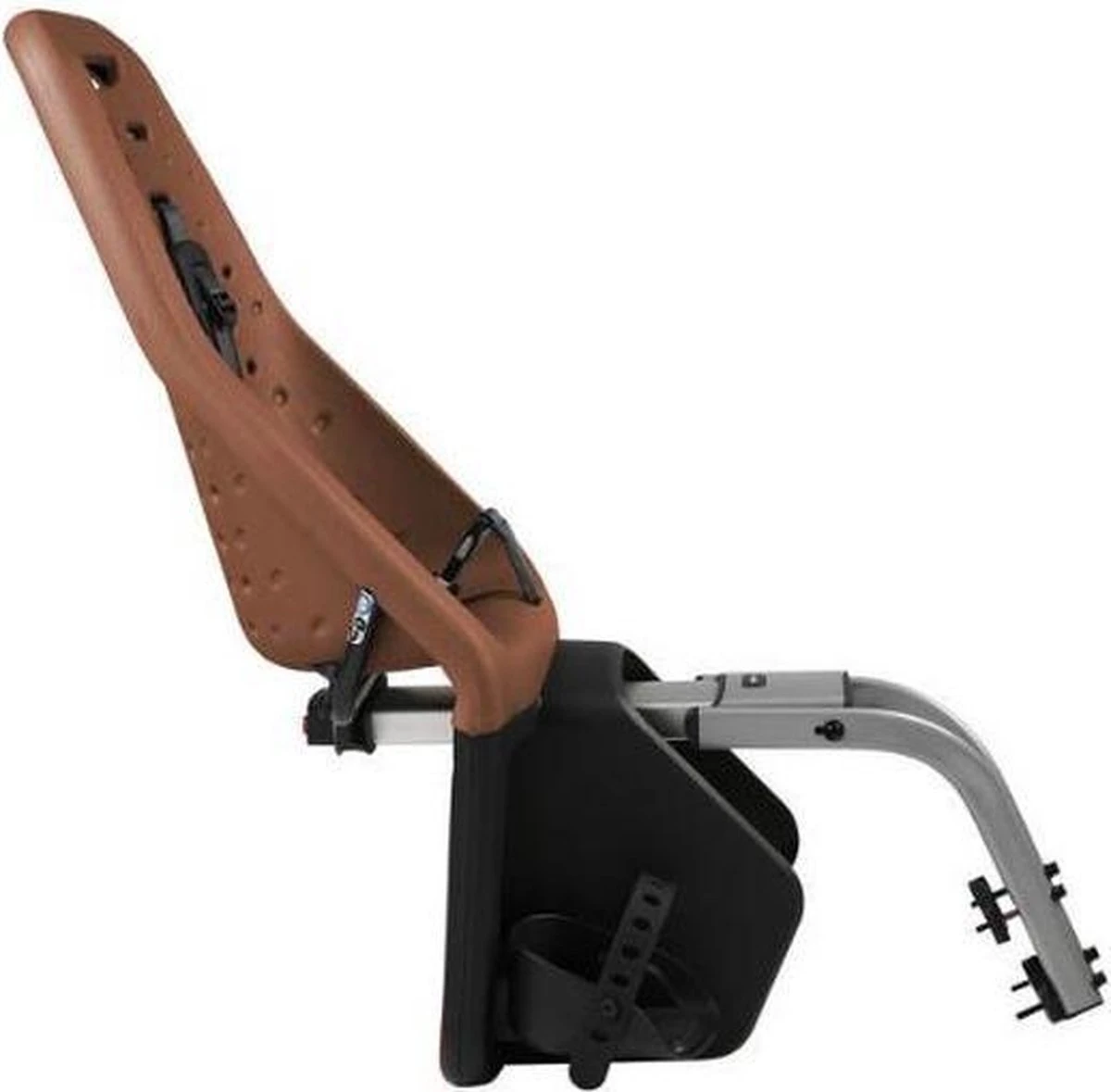 De Thule Yepp Maxi Frame Mount Brown is een fietszitje dat ontworpen is voor achterop de fiets door middel van een zadelbuisbevestiging. Dit zitje is te gebruiken vanaf 9 maanden tot 6 jaar en tot 22 kg. Het is een slim en functioneel zitje met persoonlijkheid voor dagelijks gebruik en kan makkelijk bevestigd worden aan de frame van uw fiets. De Thule Yepp Maxi FM biedt maximaal comfort door de zachte en schokabsorberende zitting en heeft een veilige en goede pasvorm dankzij de verstelbare, vijfpuntsgordel met zachte schouderpads. Ook gemak en flexibiliteit zijn verzekerd naarmate het kind groter wordt dankzij de met ƩƩn hand verstelbare voetsteunen en voetriemen. Ook geeft de ingebouwde reflector en bevestigingspunt voor fietsverlichting u meer veiligheid. Het zitje is makkelijk te reinigen en droog te houden dankzij de waterafstotende materialen van het fietszitje en tevens voorzien van een slot.