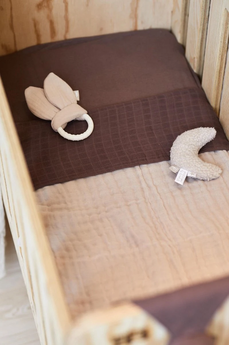 Met de afmeting 120×120 cm past de deken in een wieg en in de kinderwagen.