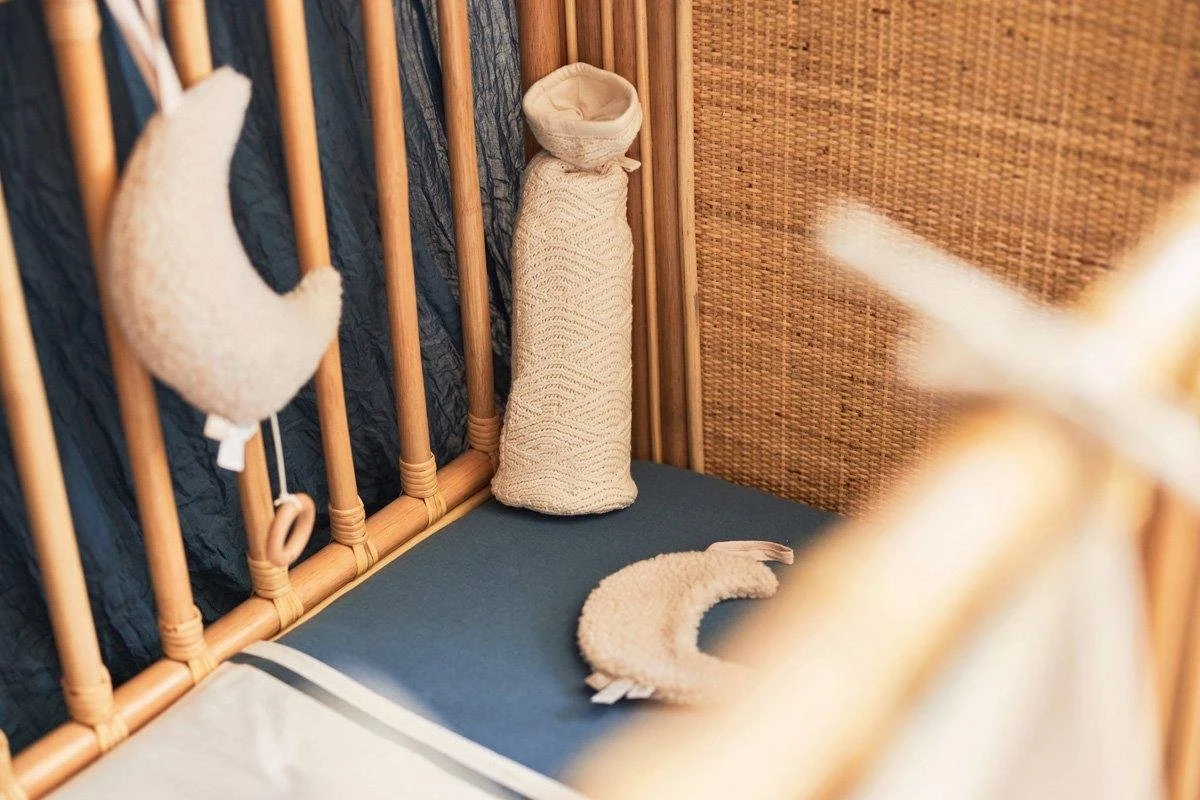 Zacht wit lakentje die geschikt is voor een ledikant. Het laken heeft een leuke opdruk van maantjes passend bij het Moonlight thema. De opdruk is blauw en het laken zelf is wit. Hij is gemaakt van 100% katoen en meet 120×150 cm.