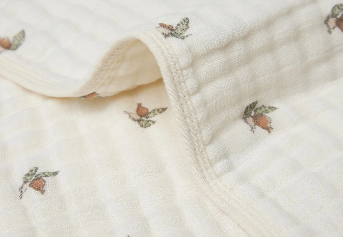 Heerlijk wegdromen onder dit hydrofiele deken voor de wieg 75x100cm Rosehip. Een fijn dekentje in een heerlijk zachte katoenen hydrofiele stof, ideaal voor de zomer, maar ook fijn om te gebruiken als extra deken in combinatie met een slaapzak.