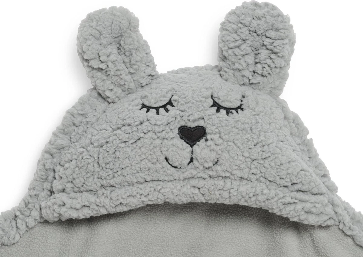Wikkel je baby in deze omslagdoek en sluit de deken met de praktische klittenbandstroken. Zet het mutsje erbij op en zie daar, die schattige oortjes en dito konijnengezichtje op het mutsje. Echt te lief!