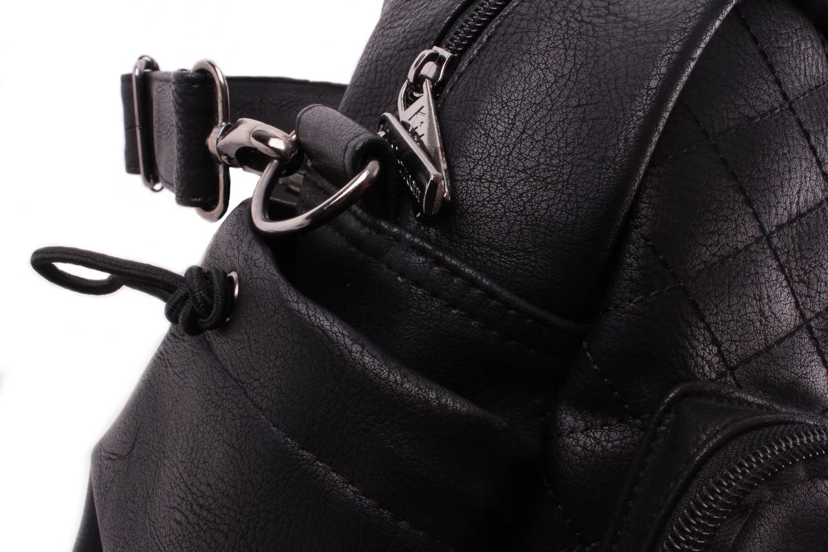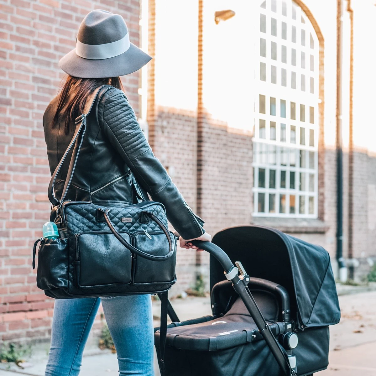 Deze verzorgingstas is een city chic model in leatherlook. Het model heeft stiksels in ruitjespatroon, wat de verzorgingstas een luxueuze uitstraling geeft. Naast de stijlvolle uitstraling is de verzorgingstas ook zeer praktisch met een ruim hoofdvak en diverse insteek en opbergvakjes. Hiermee is het een ware it-bag voor de fashionable mamaās.
