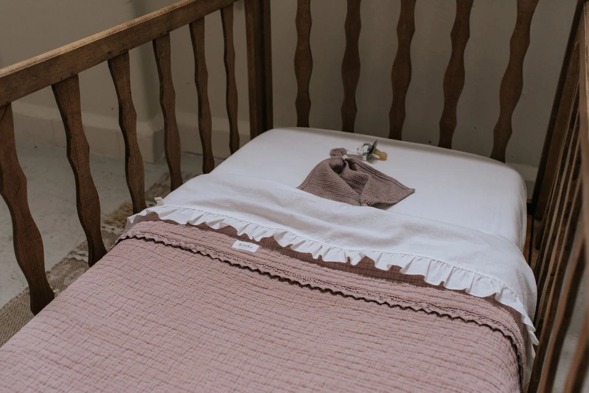 De Koeka ledikantlakens zijn gemaakt van 100% katoen en voelen daarmee lekker fris en crispy aan. De lakens zijn zacht, luchtdoorlatend en duurzaam. Met het ruffle randje dat boven de deken uitpiept, maak je een romantische styling compleet of voeg je net dat dromerige detail toe aan je stoere inrichting. Combineer de Ruffle sheet met je favoriete Koeka deken.
