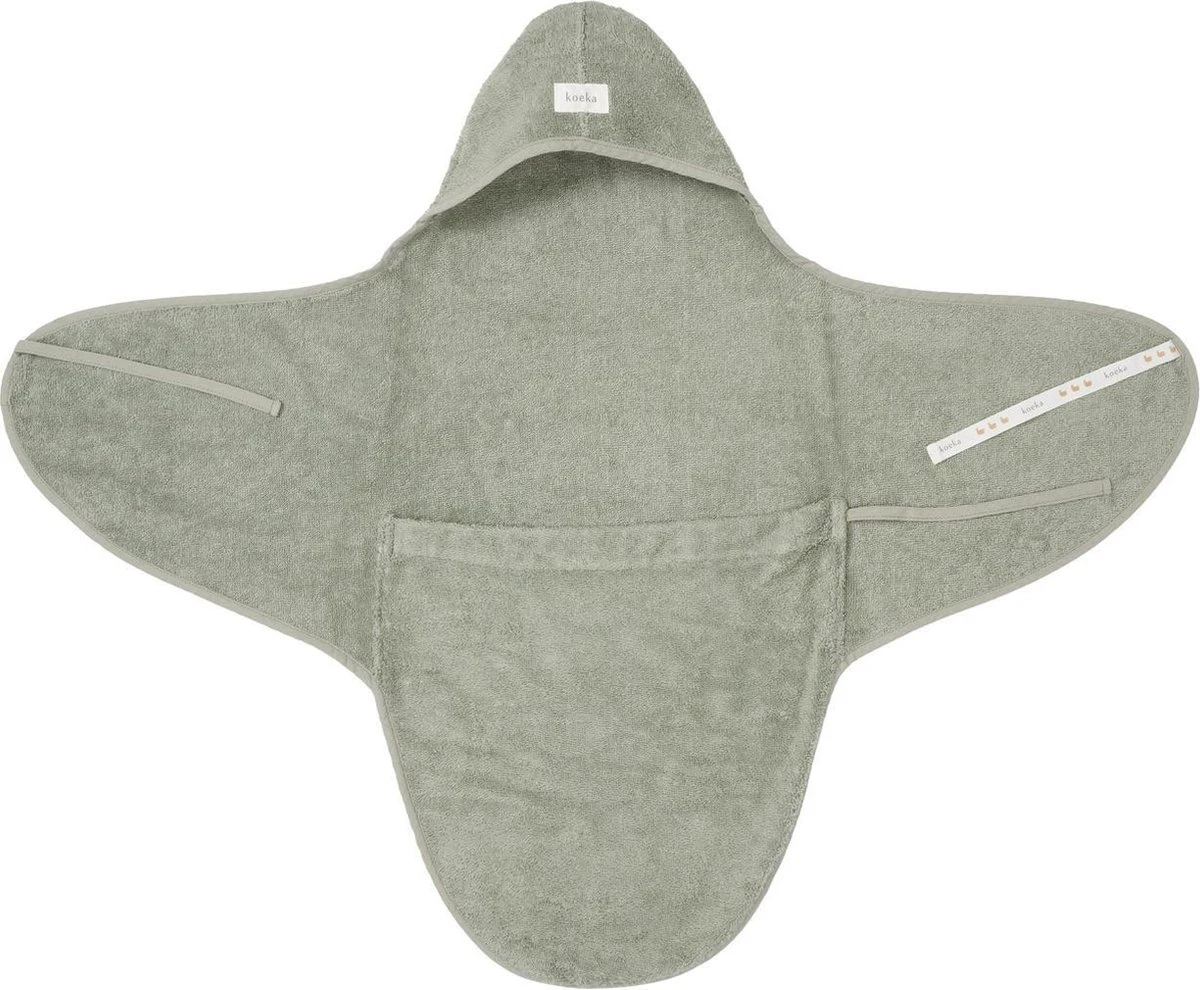 Het badritueel met je kleintje is een fijn en intiem moment. Om dit relaxte en comfortabele gevoel voor zowel jou als je baby ook na het wassen te blijven ervaren mag een omslagdoek niet ontbreken aan je bad ritueel. Na het badje kun je je kindje lekker in de zachte doek wikkelen waarbij het hoofdje comfortabel wordt omsloten door de capuchon. De omslagdoek kun je gemakkelijk dichtmaken met de daarvoor bestemde koordjes zodat je kleintje lekker warm blijft. Ook is het fijn om je kindje in deze wikkeldoek borstvoeding of de fles te geven terwijl de voetjes lekker warm in de buidel blijven zitten. Deze omslagdoek is voor baby’s die net geboren zijn tot ongeveer 6 maanden oud.
