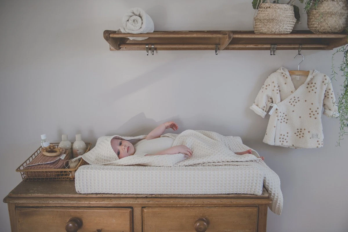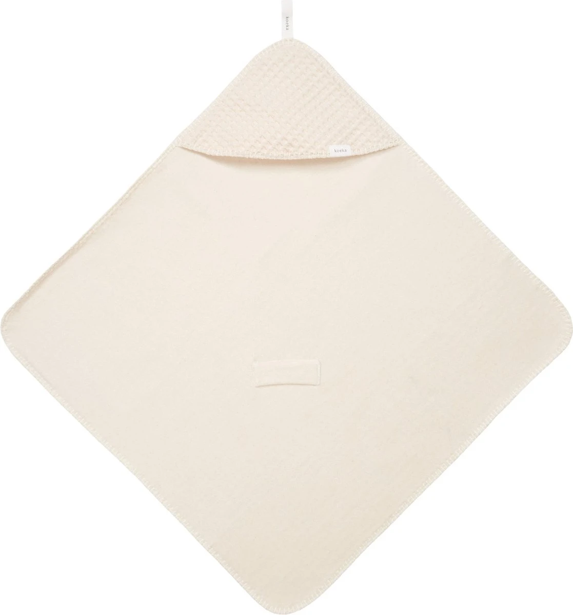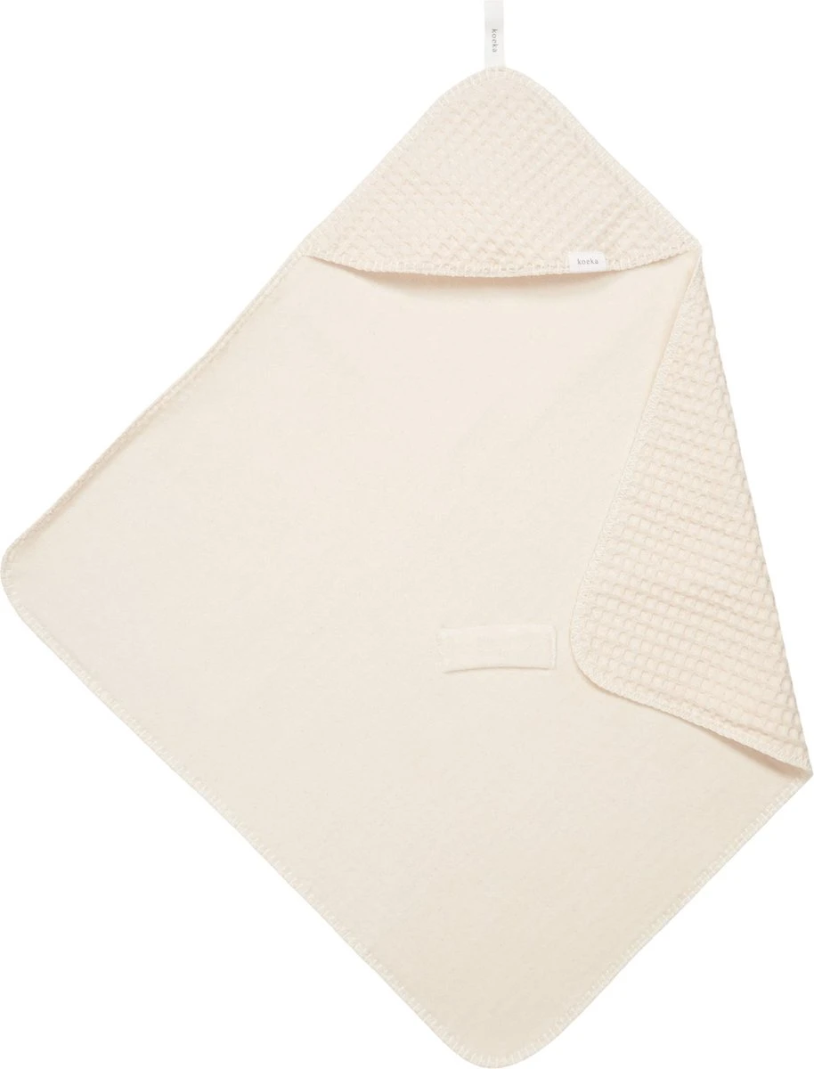 De Koeka omslagdoek met capuchon is met stretch badstof gevoerd en gebruik je om je baby in te wikkelen. Deze wikkeldoek is voorzien van een opening voor de gordels van de auto- of wipstoel. Zo blijft je kleintje altijd comfortabel warm, zowel in huis als onderweg. De omslagdoek is ook fijn om te gebruiken tijdens het voeden of om je kindje in te wikkelen in de box of kinderwagen. Door de handige lus hangt de doek altijd binnen handbereik in de bad- of babykamer.