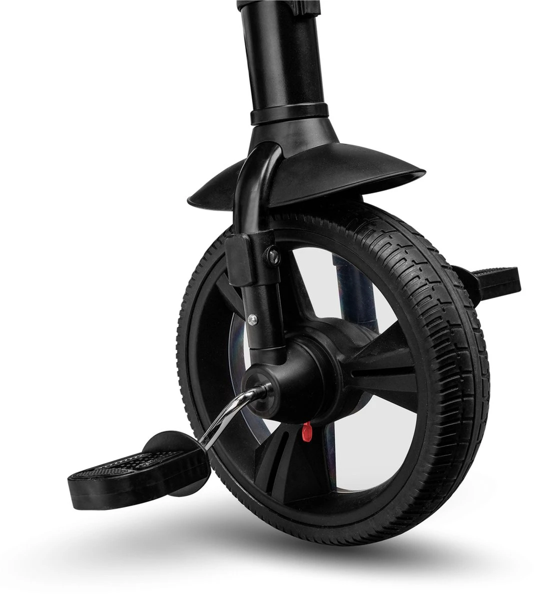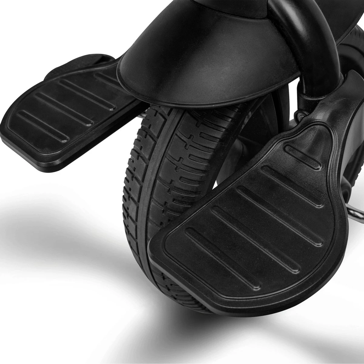 3 grote wielen met diameter 10 “en 8” en een speciaal ontworpen loopvlak maken de fiets gemakkelijk te rijden op hobbelige wegen. De wielen zijn volledig gemaakt van hoogwaardig, zeer licht PU-materiaal – hierdoor is het niet mogelijk om ze lek te raken en hoeven niet te worden gepompt. Er is ook een hoes op het voorwiel, die voor de voetjes van de baby zorgt en als stootkussen fungeert.