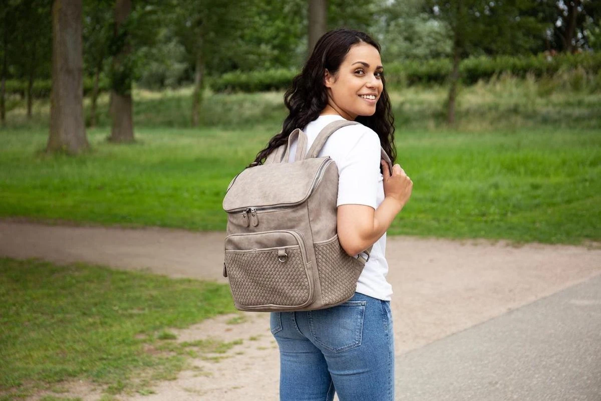Luiers: Check. Snoetenpoetsers: Check. Onze Lisbon luierrugtas zorgt ervoor dat je jouw gehele luiertaschecklist georganiseerd en binnen handbereik hebt. Naast de twee hoofdvakken heeft de tas nog twee steekvakken aan de zijkant voor bijvoorbeeld je babyflesje of eigen drinken. De Lisbon braided luierrugtas is essentieel en zowel overdag met je kindje als ās avonds met je vriendinnen op stap te gebruiken. Het ultieme gemak met stijl!
