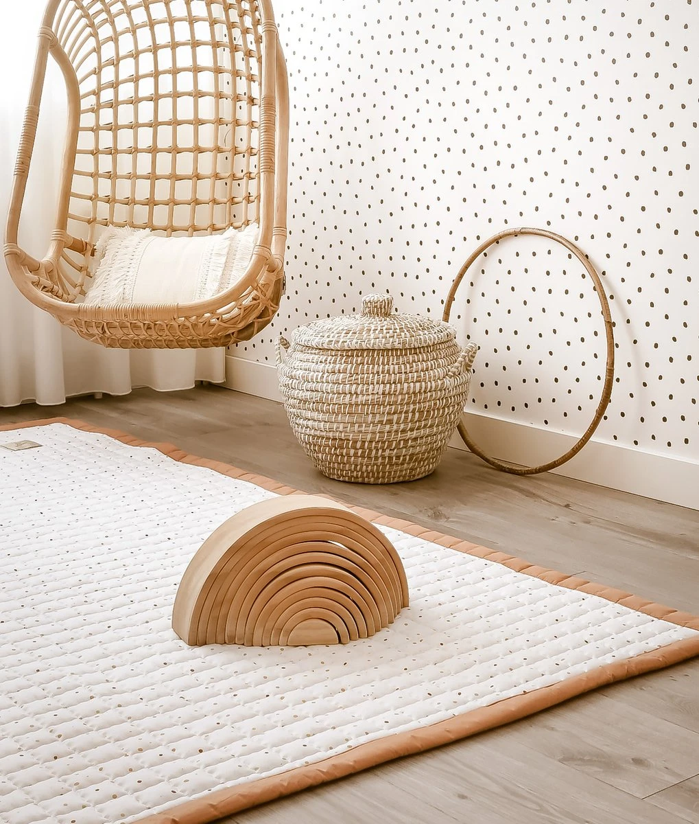 Groot speelkleed geschikt voor in de woonkamer, kinderkamer of gooi hem buiten neer. Hij is heerlijk zacht en makkelijk schoon te maken. Creƫer een speelplek waar je samen kunt spelen.