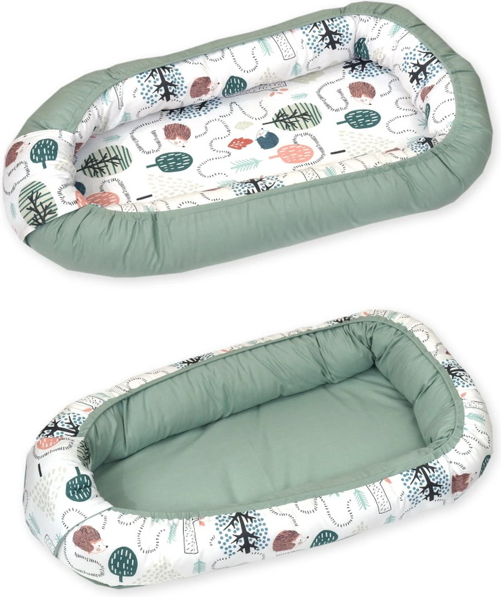 Het babynestje is voorzien van 2 verschillende printjes en is omkeerbaar, zo kan jij zelf kiezen voor welk design je gaat! De ene kant van het babynestje is stonegreen van kleur, de andere kant heeft een dierenprint.