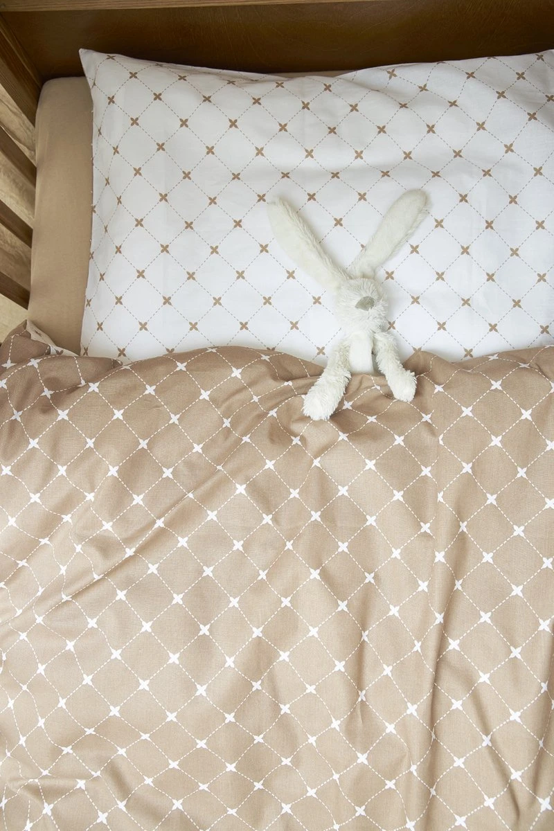 Doordat het dekbedovertrek gemaakt is van 100% zachte katoen, krijgt je kindje het niet te snel warm. De stof laat namelijk goed lucht door en absorbeert vocht. Je kindje slaapt dus lekker warm, comfortabel en droog. De set bestaat uit een dekbedovertrek en een kussensloop van 40×60 cm.