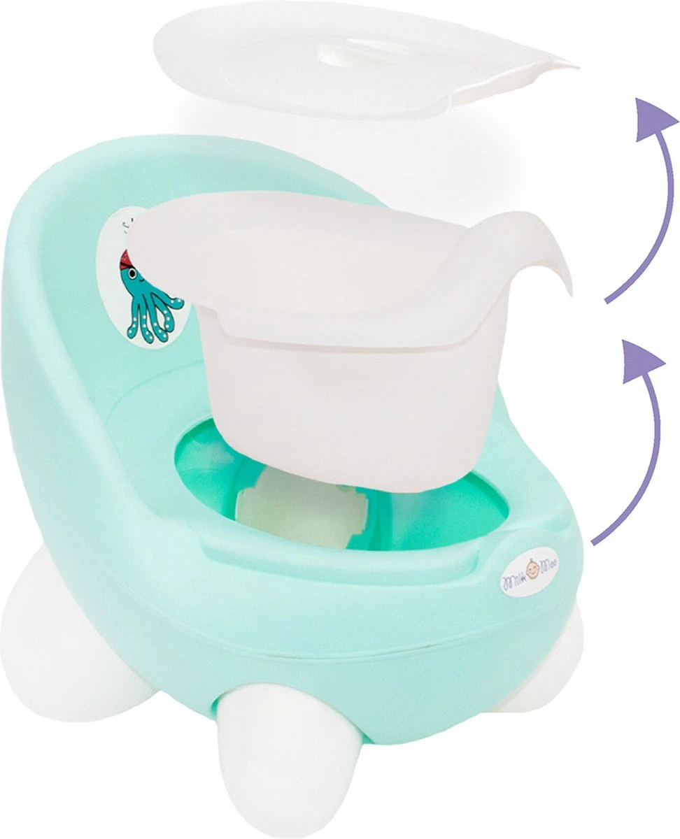 MILK&MOO PLASPOTJE: Milk&Moo zitpotje is gemaakt van BPA-vrij plastic van goede kwaliteit. Het stoelachtige ontwerp met de juiste maat, gladde randen, rugleuning en zijarmleuningen geven uw kind optimale ondersteuning om goed te gaan zitten en op te staan. We hebben rekening gehouden met gebruiksgemak, reinigingsfuncties en het algehele ontwerp om het zindelijkheidstrainingtoilet gemakkelijker te maken. Het is ook heel schattig voor zowel jongens als meisjes. Gewicht: 2,6 lb, 1180 gr Afmetingen: 11x11x12 inch, 28x28x32 cm. VEILIG IN GEBRUIK: Milk&Moo-materialen geven altijd de meest intieme zorg voor de gezondheid van uw kind. Dit plastic babypotje is gemaakt van BPA-vrije materialen en andere schadelijke stoffen om veilig gebruik te beloven. Om een āāgeschikte samenstelling te garanderen die speciaal is vervaardigd voor zuigelingen en jonge kinderen, zijn we gecertificeerd volgens Safety Certification Foundations. GEMAKKELIJK TE SCHOONMAKEN PLASPOTJE: Dankzij het handige binnenpotje is deze potje stoel super eenvoudig schoon te maken. Het hele product is gemaakt van plastic, dus afvegen en desinfecteren is eenvoudig. Til eenvoudig het binnenpotje eruit, maak het leeg en veeg het schoon of spoel het af met water. Ouders merken ook op dat de vorm van het ingebouwde spatscherm ook zeer effectief is voor zowel meisjes als jongens om morsen te voorkomen en het schoner in gebruik te maken. Door de extra afdekkap voor het potje staat hij netjes in je badkamer. NON SLIP DESIGN: Milk & Moo peuterpotje heeft antislipmateriaal langs de onderrand om ervoor te zorgen dat het niet over de vloer glijdt en stevig op zijn plaats blijft voor veiligheid, zodat uw baby niet uitglijdt of zich bezeert. DRAAGBARE POTJE TRAINING: Deze potje stoel geeft je de flexibiliteit van zindelijkheidstraining van overal in huis en zelfs verplaatsen van kamer naar kamer. Je kunt het handig houden voor gebruik door je kind, zowel thuis als op reis. Door zijn compacte formaat is hij ook geschikt voor nog kleinere badkamers.
