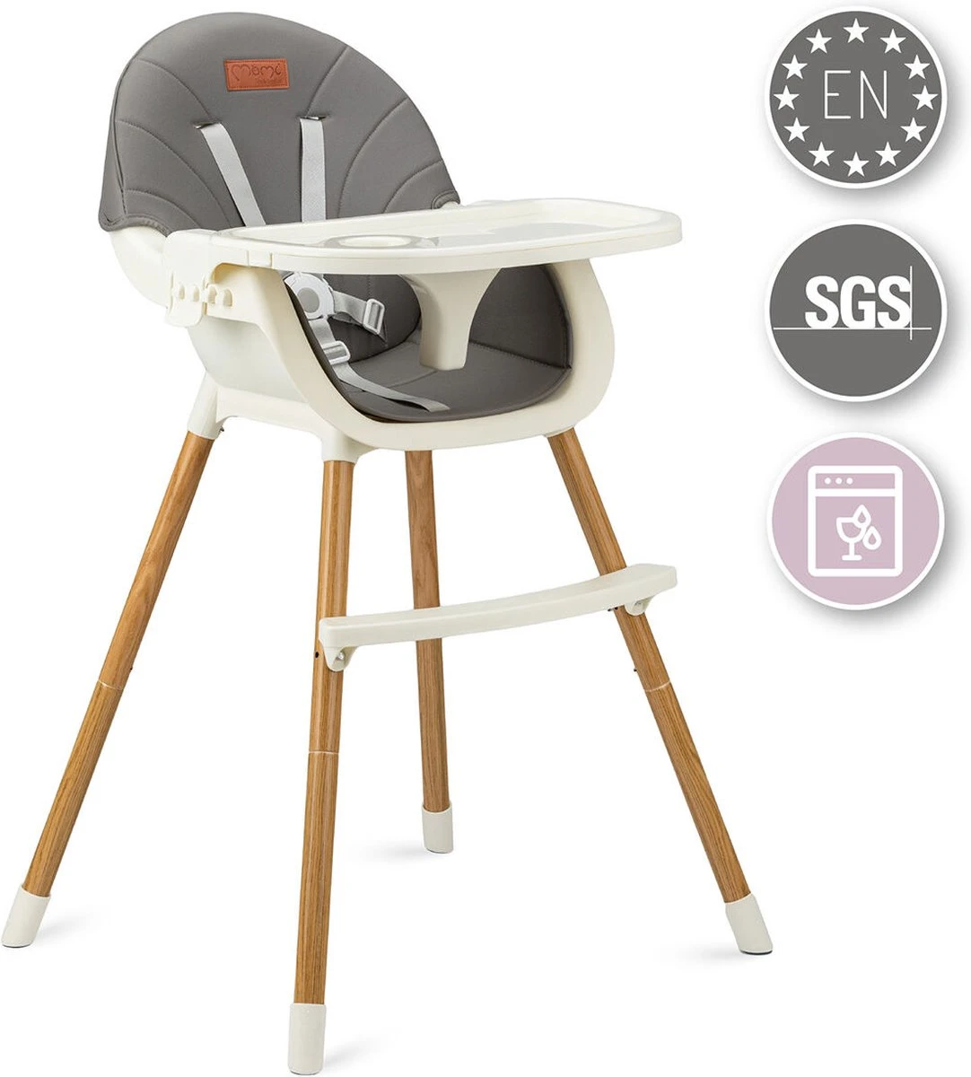 Het dubbele eetblad van MoMi FLOVI is verstelbaar, wat betekent dat je het op verschillende afstanden van het kind kunt plaatsen, afhankelijk van leeftijd en behoeften. Het eetblad heeft een bekerhouder. Het bovenste blad is vaatwasmachinebestendig.