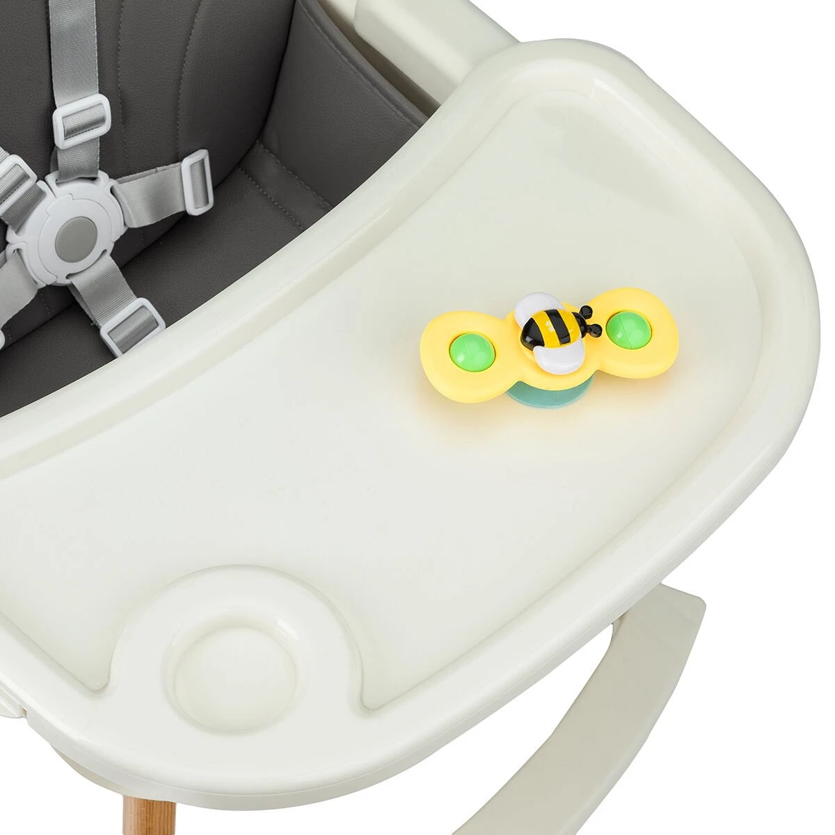 De kinderstoel wordt inclusief een klein speeltje geleverd. Deze heeft een zuignap waardoor het niet op de grond zal vallen. Het is een klein ding, maar het houdt de baby blij tijdens het wachten op een maaltijd?