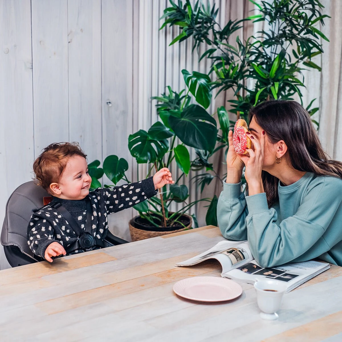 Wanneer je de MoMi FLOVI koopt, krijg je meer! Het is niet alleen een gewone Kinderstoel met een eetblad, maar ook een hoge stoel, die je aan de tafel kunt schuiven voor een familiediner en een lage stoel – perfect voor een kleinere tafel voor een ouder kind.