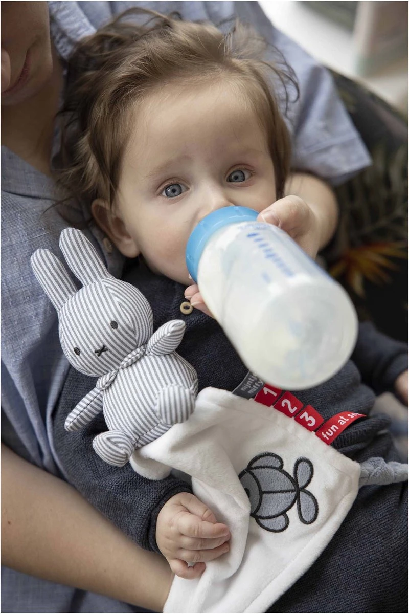 Dit is een heerlijk zacht knuffeldoekje van nijntje. Door de knoopjes in de hoeken is het knuffeldoekje gemakkelijk beet te pakken. Ideaal speelgoed voor in de box. Ook leuk om te geven als kraamcadeautje. Vanaf de geboorte. De nijntje fun at Sea collectie in rib stof is gemaakt van zachte materialen. De uitgebreide lijn bestaat o.a. uit knuffels in verschillende maten, een muziekdoosje, een ringrammelaar, een muziekmobiel, een trilfiguur en een knuffeldoekje. De nijntje fun at sea collectie is leuk als decoratie voor de babykamer maar uiteraard ook heerlijk om mee te knuffelen en te spelen!