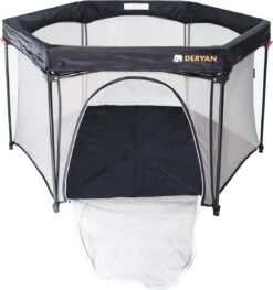 Deryan Luxe Campingbed Compleet – 120x60cm – Bodemverhoger – Verschoonblad – Opbergmand – Grijs