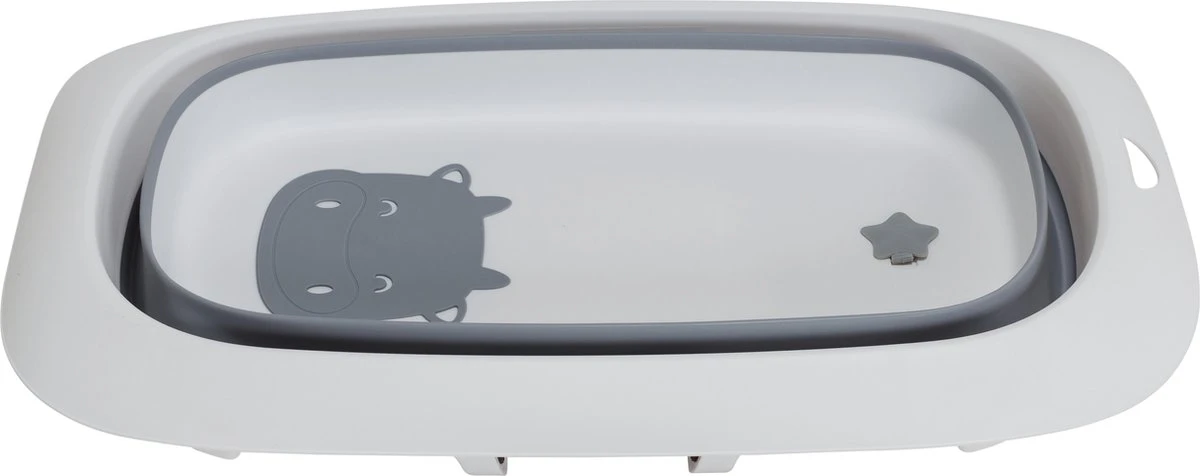 Dit handige opvouwbare kinderbadje in maat M, heeft een flexibele buigbare wand (grijs). Hierdoor kun je het plat opvouwen en compact opbergen. Superhandig voor thuis, op de camping of bij de oppas. De bovenrand, uitklap-poten en bodem zijn gemaakt van stevig kunststof (mat wit) waardoor het niet inzakt en alles veilig te gebruiken is, ook met je pasgeboren kindje.