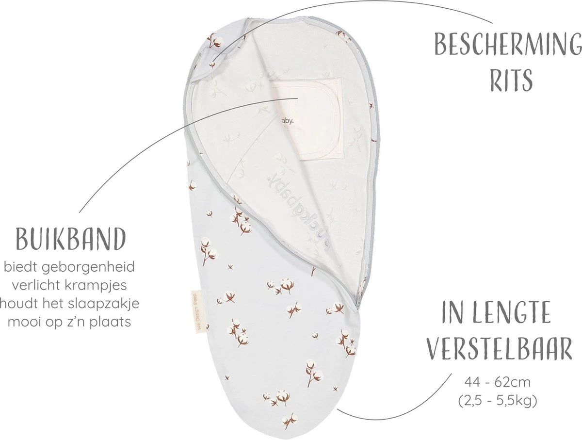 - en ook al snel weer wakker wordt. Omdat de armpjes binnenin het slaapzakje zitten, kan een baby’tje zichzelf niet wakker slaan met de eigen maaiende armpjes.