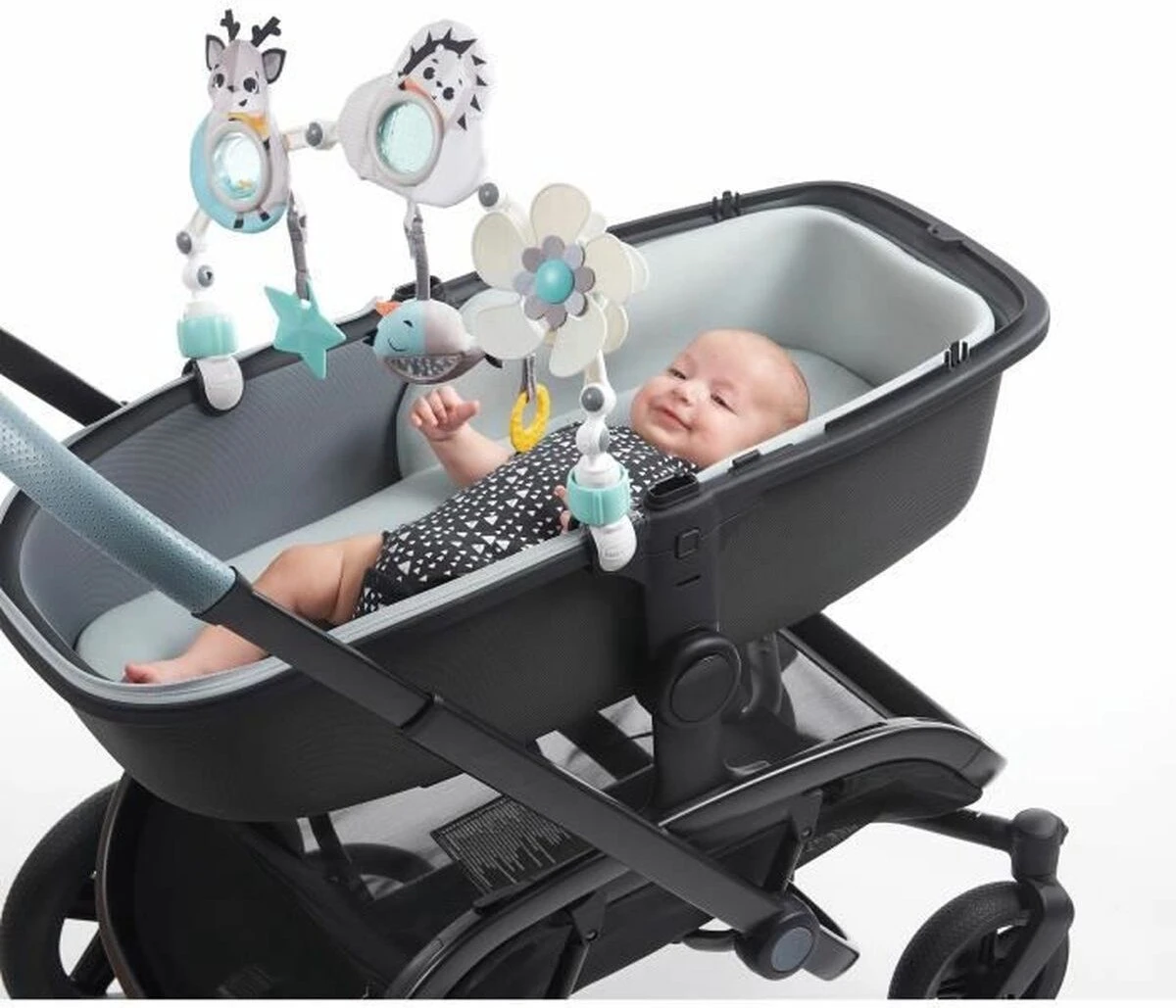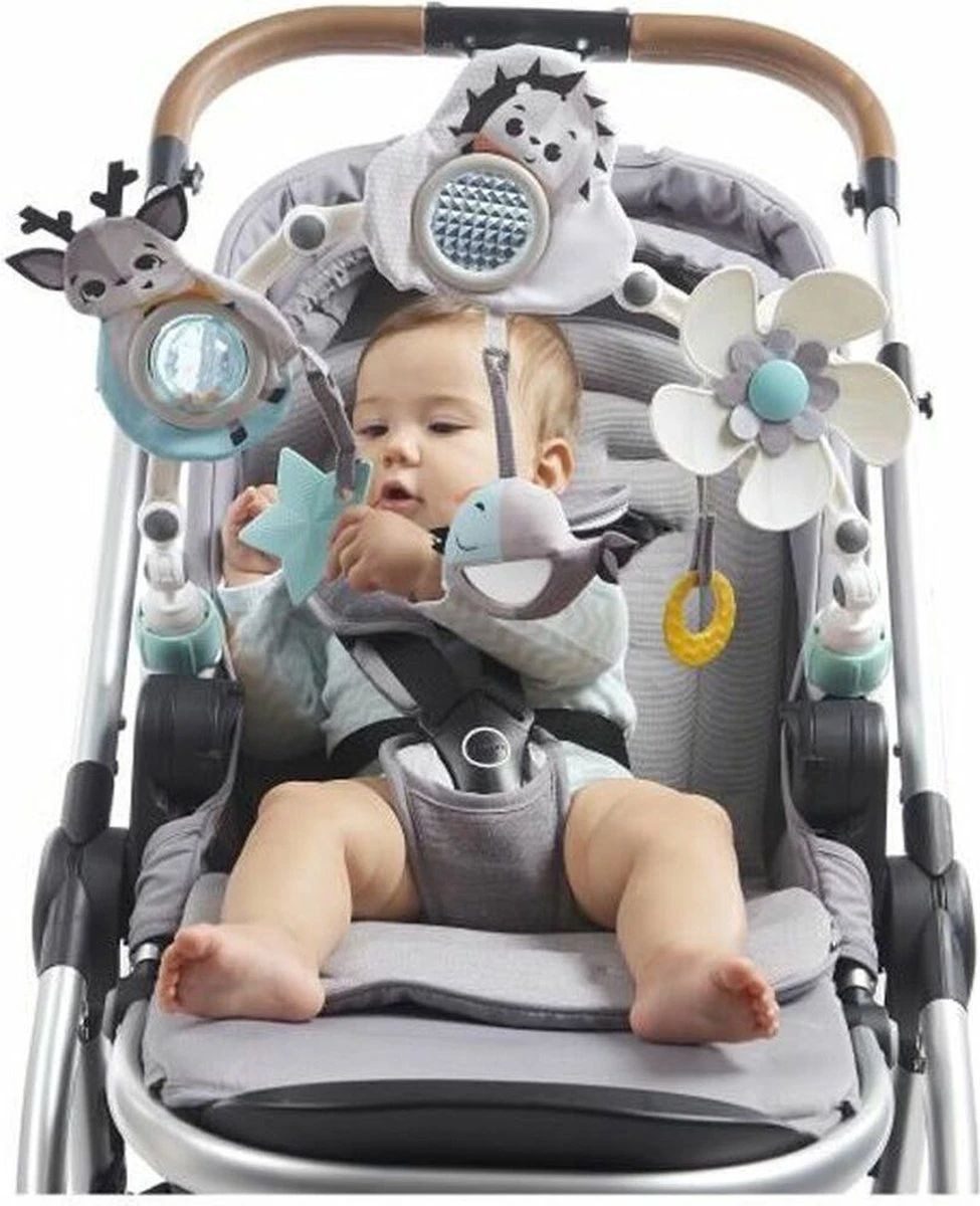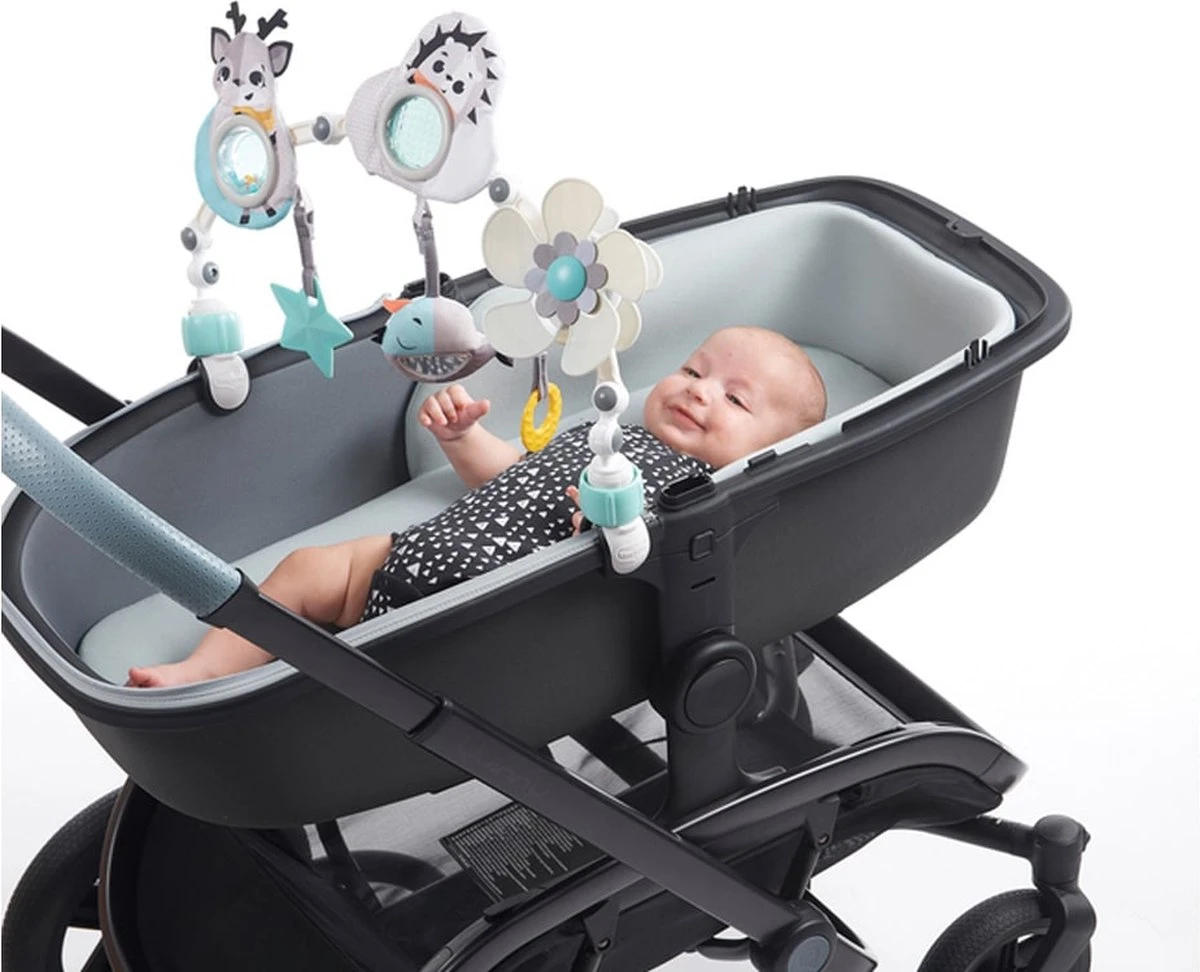 De Magic Tales Sunny Stroll flexibele meeneemboog zal genieten van een groot aantal activiteiten die speciaal zijn ontworpen om de zintuigen te ontwikkelen en de baby te amuseren. De hoek van de boog kan worden aangepast om je baby gemakkelijk toegang te geven tot het speelgoed. Sunny Stroll met zijn verstelbare clips maakt verbinding met de meeste kinderwagens een fluitje van een cent! De Magic Tales Sunny Stroll is geweldig voor ontwikkeling vanaf dag 1. Het zwart-witte kleurenschema met de uitbarstingen van pastel verleidt het gezichtsvermogen van de baby. Baby zal zeker zijn hand uitstrekken en het bungelende speelgoed aanraken of een glimp opvangen van zijn glimlach in de schattige rammelaar met een spiegel. En naarmate de baby wat ouder wordt, moedigen de bungelende speeltjes van Sunny Stroll aan om te grijpen en te trekken – leren over oorzaak en gevolg.