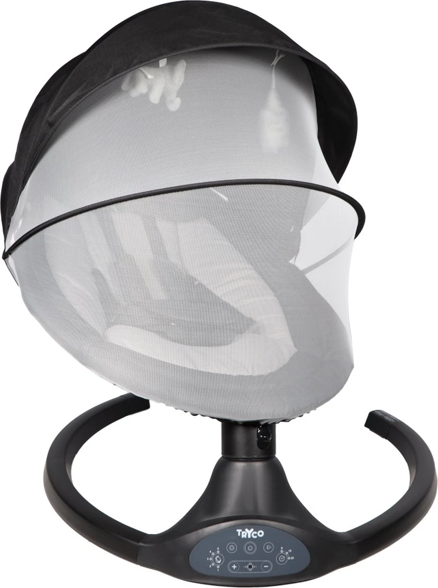 Deze Tryco Hugg babyswing is ideaal om je kleine rustig in slaap te wiegen! De Hugg heeft een grote zonnekap met muskietennet, waardoor je de swing buiten kan zetten zonder dat de zon of er beestjes bij je kindje komen. De pluche speeltjes zorgen voor plezier!
