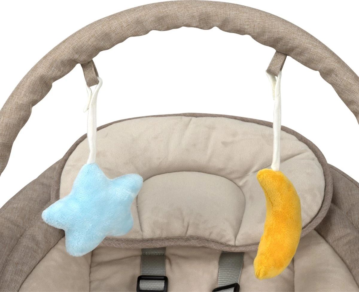 De wipstoel is dankzij de ligstand al geschikt vanaf de geboorte. De wipstoel is uitgerust met heerlijk zachte bekleding en een ondersteunend hoofdkussen om jouw kindje de juiste positie te geven. Aan de wipstoel zit een speelboog welke is voorzien van 2 speeltjes. Deze is tevens ook afneembaar of in een andere positie te verstellen. De wipstoel is uitgerust met een 5-puntsveiligheidsgordel zodat jouw kindje altijd veilig in de wipstoel ligt.